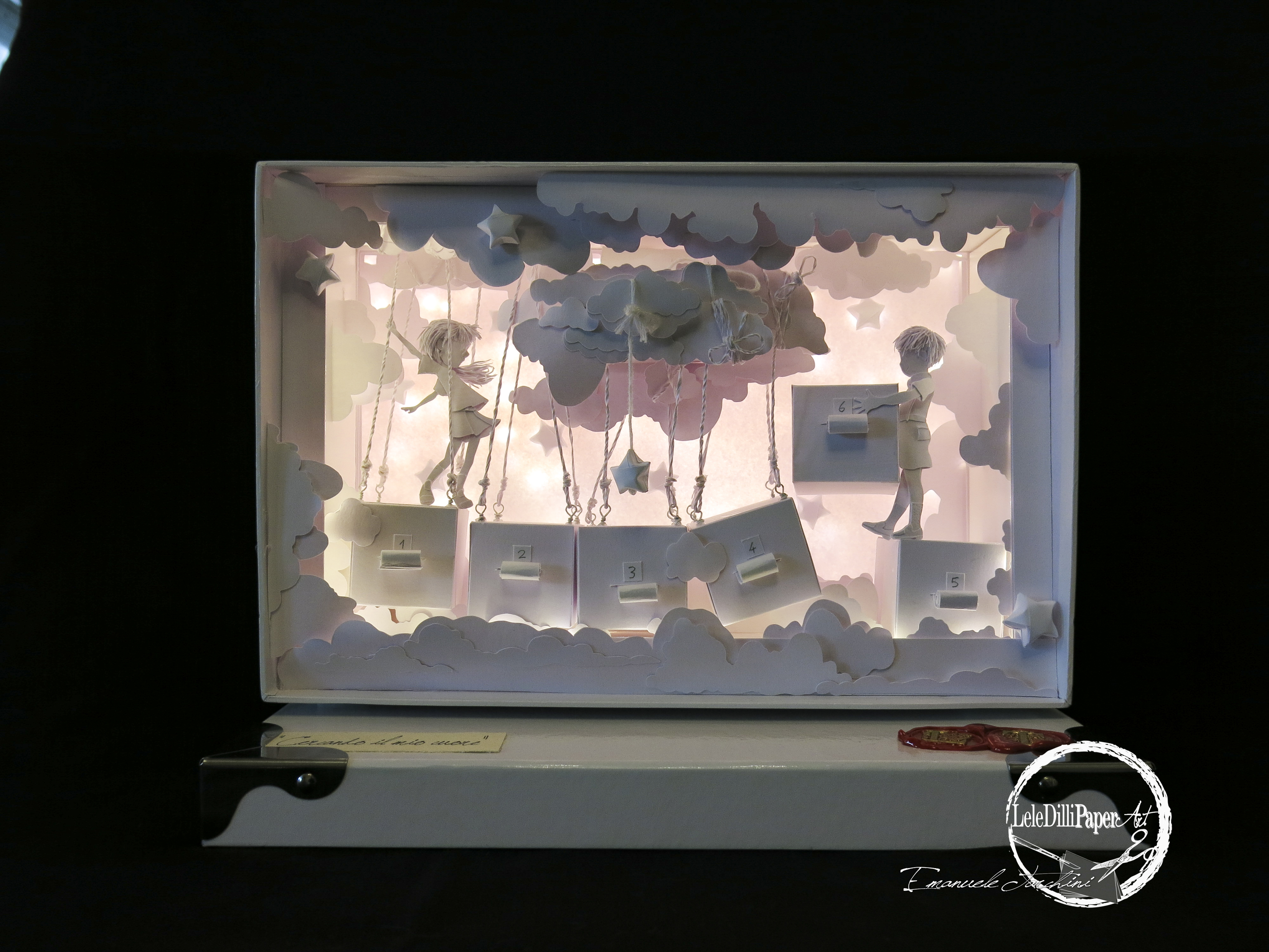 “LAMPIONI INNAMORATI” (diorama libro scultura)