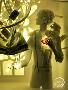 “LAMPIONI INNAMORATI” (diorama libro scultura)
